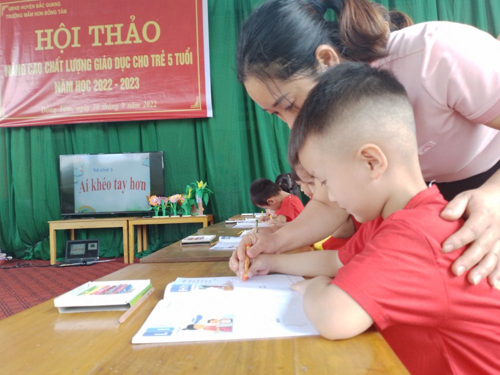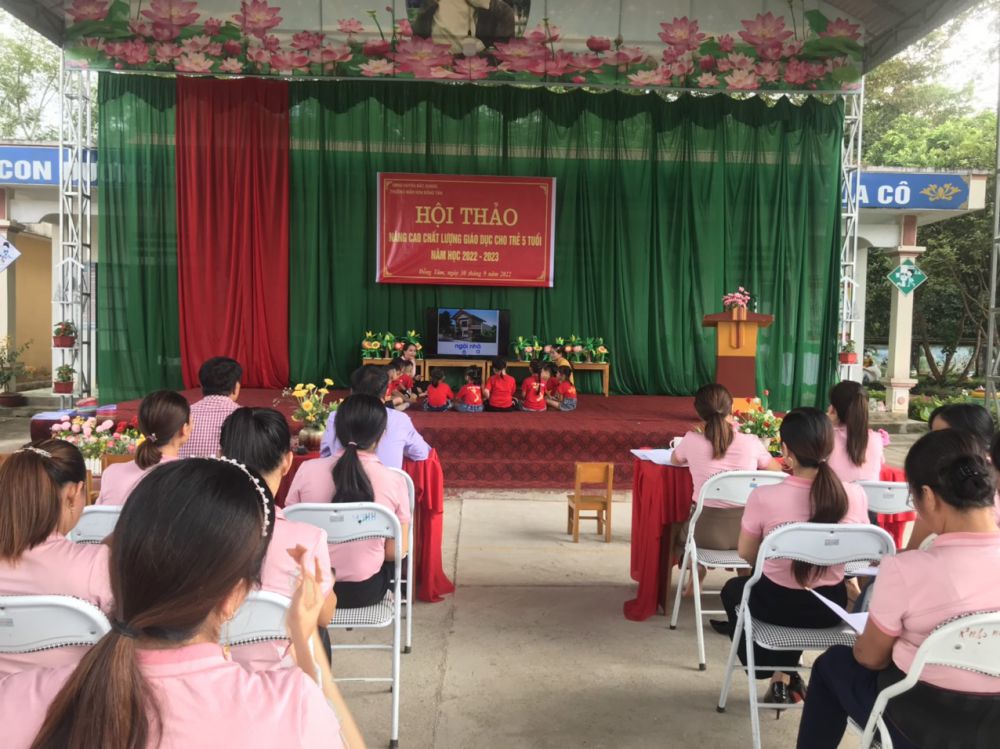 Chiều ngày 30/9/2022, Thực hiện Công văn số 412/PGDĐT-CM ngày 23/9/2022 của Phòng GD&ĐT Bắc Quang về việc thực hiện nâng cao chất lượng GDMN, tiểu học từ năm học 2022-2023. Trường mầm non Đồng Tâm phối hợp với Trường TH&THCS Đồng Tâm tổ chức Hội thảo “Nâng cao chất lượng giáo dục cho trẻ 5 tuổi”. Đến dự có đ/c Nguyễn Văn Phú, Phó chủ tịch UBND xã Đồng Tâm, Ông Phạm Hồng Thái, Trưởng ban đại diện phụ huynh học sinh nhà trường. 100% giáo viên tổ mẫu giáo dạy lớp mẫu giáo 5 tuổi. Thông qua hội thảo trường Mầm non và trường Tiểu học đã thống nhất việc nâng cao chất lượng giáo dục trẻ 5 tuổi với nội dung giáo dục liên thông trường Tiểu học, giúp trẻ 5 tuổi chuẩn bị sẵn sàng vào học lớp 1. Hội thảo đã diễn ra thành công tốt đẹp!