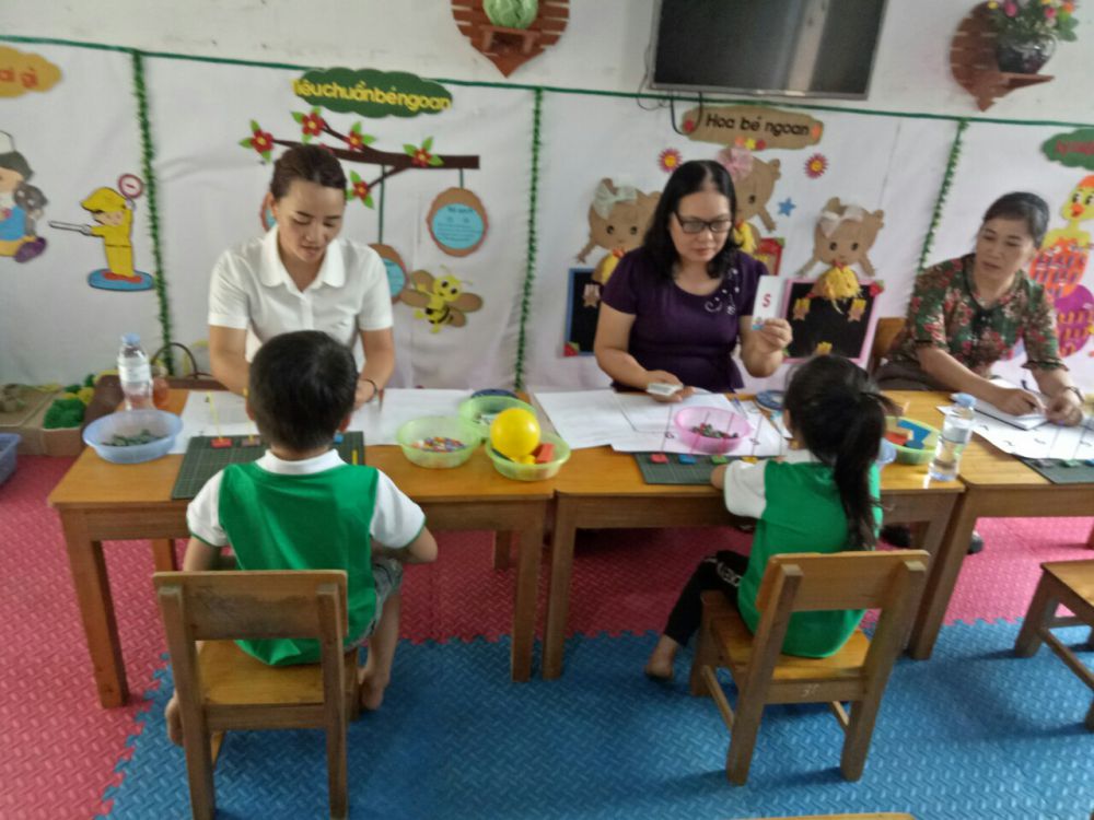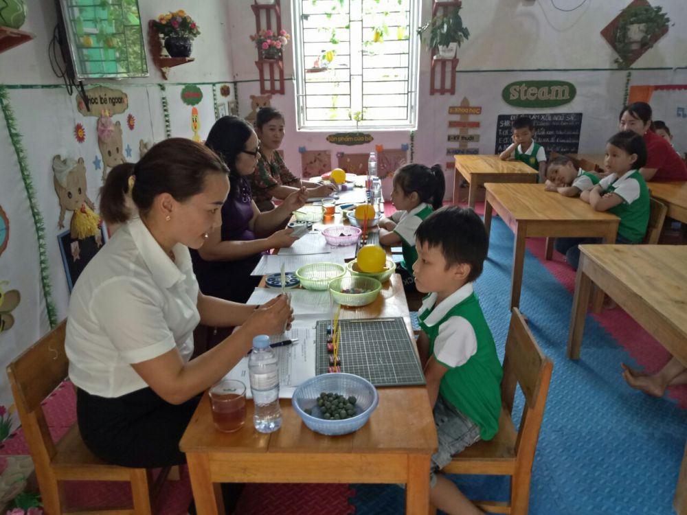 Với hình thức khảo sát, đánh giá trực tiếp tại các lớp có trẻ 5 tuổi thông qua các bài tập, trò chơi, trả lời câu hỏi của cô học sinh rất hào hứng tham gia vào các hoạt động và đạt các nội dung yêu cầu. Kết quả tổng số trẻ đạt các nội dung từ 80-100% là: 109/109 trẻ.