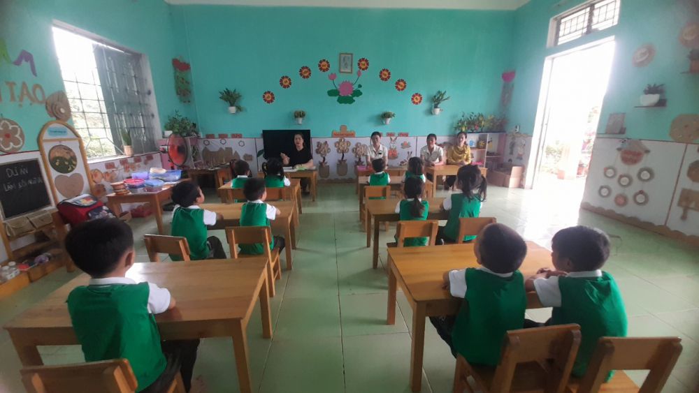 Dự đánh giá có các đồng chí là Viên chức quản lý, tổ trưởng chuyên môn, giáo viên dạy lớp 5 tuổi các đơn vị trường trong cụm, giáo viên trường Tiểu học trên địa bà xã và 100% trẻ mẫu giáo 5-6 tuổi trong toàn trường.