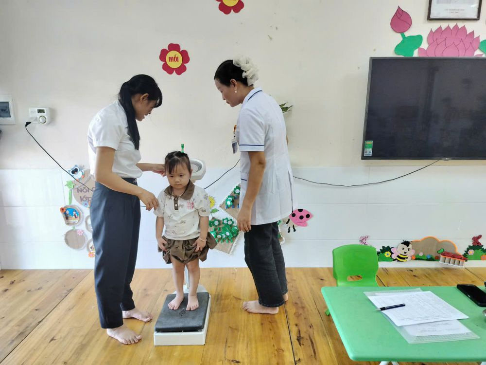 Việc tổ chức khám sức khỏe định kỳ không chỉ giúp phát hiện sớm các vấn đề về sức khỏe mà còn là cơ sở để nhà trường, phụ huynh cùng phối hợp chăm sóc, nuôi dưỡng trẻ tốt hơn. Buổi khám sức khỏe diễn ra nghiêm túc, an toàn và nhận được sự hợp tác, vui vẻ của các bé.