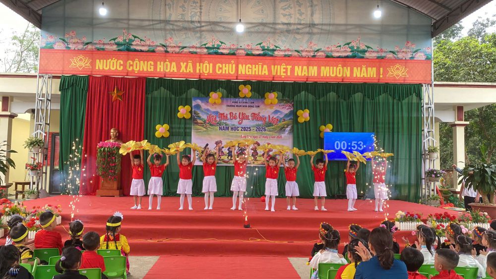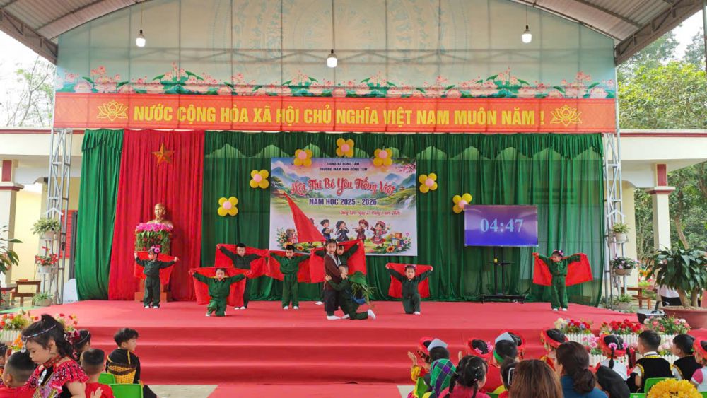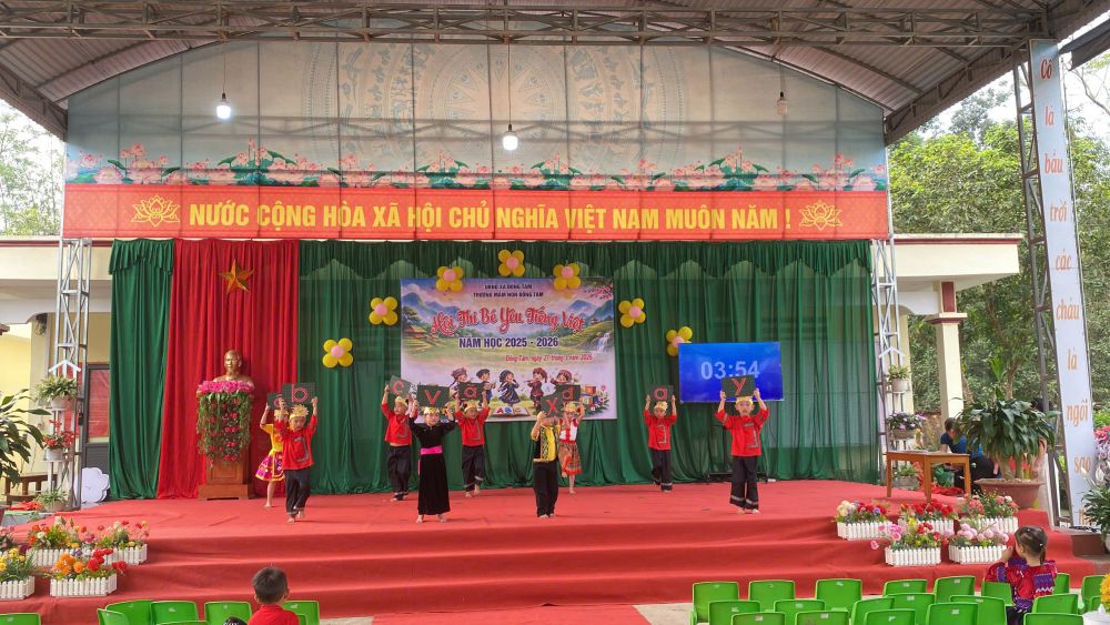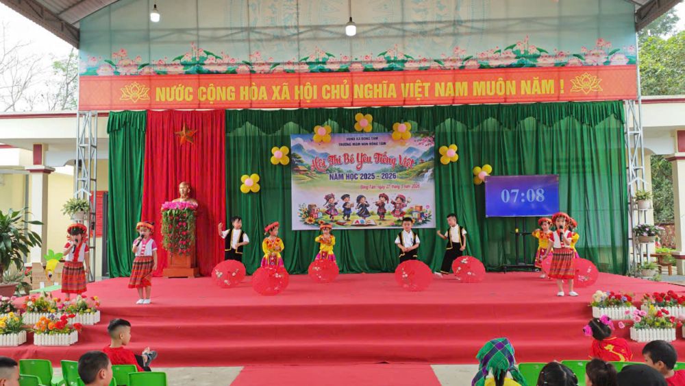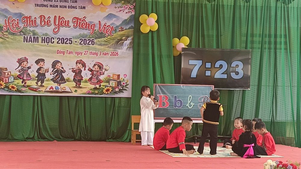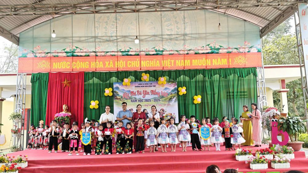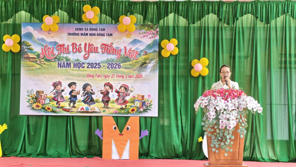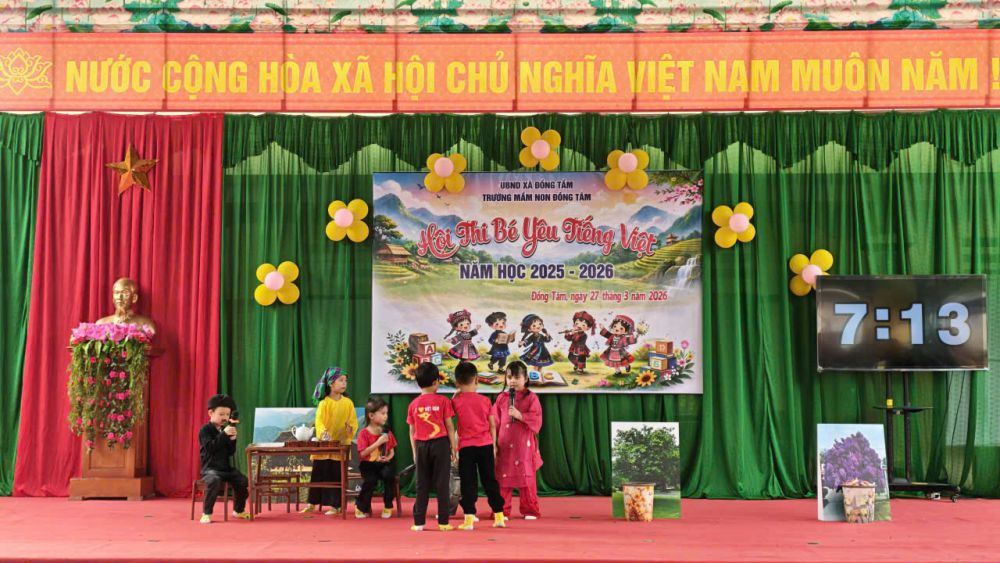 Nhằm thực hiện có hiệu quả chương trình chăm sóc, giáo dục trẻ và tăng cường tiếng Việt cho trẻ mầm non, đặc biệt là trẻ em dân tộc thiểu số, đồng thời tạo sân chơi giúp trẻ mạnh dạn, tự tin trong giao tiếp, sáng ngày 27/3/2026 trường Mầm non Đồng Tâm đã tổ chức thành công Hội thi “Bé yêu tiếng Việt” năm học 2025-2026. Đây không chỉ là sân chơi bổ ích mà còn là hành trình giúp các bạn nhỏ khám phá vẻ đẹp giàu của tiếng Việt, từ đó nuôi dưỡng tình yêu quê hương, đất nước ngay từ lứa tuổi mầm non.