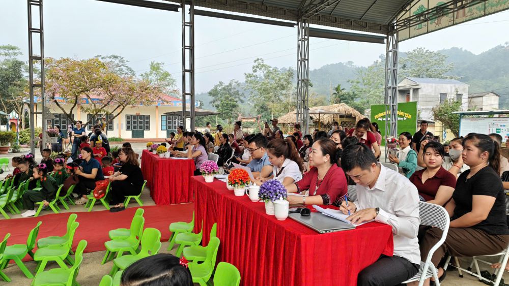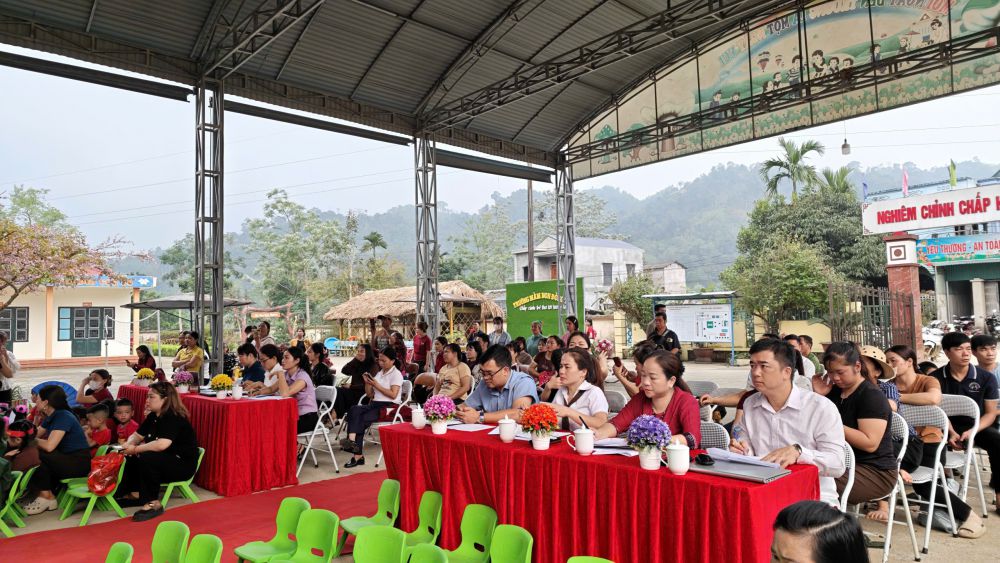 Hội thi vinh dự có sự hiện diện của đồng chí Nguyễn Trung Kiên, Ủy viên Ban thường vụ Đảng uỷ - Phó Chủ tịch thường trực UBND xã, đồng chí Nguyễn Thị Phượng, Uỷ viên BCH - Chủ tịch Hội LHPN xã, đồng chí Hà Văn Chiến, Chuyên viên phòng văn hoá xã, đồng chí Lý Thị Hồng Vân, Trưởng ban đại diện cha mẹ học sinh. Với tư cách làm Ban giám khảo, các đại biểu đã cùng Ban giám hiệu nhà trường làm việc công tâm, khách quan, góp phần quan trọng vào sự thành công và tính chuyên môn của Hội thi.